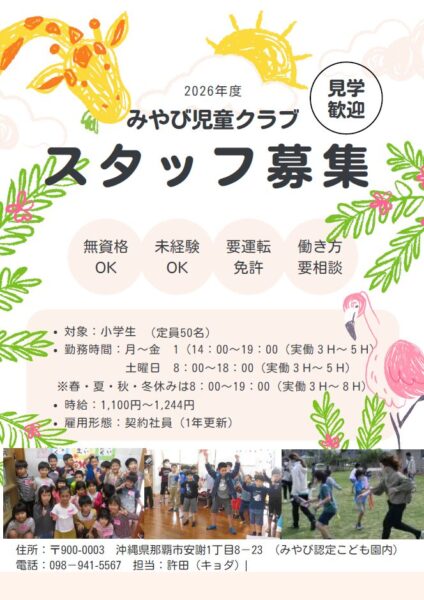 住所:〒900-0003 沖縄県那覇市安謝1丁目8-23 (みやび認定こども園内)