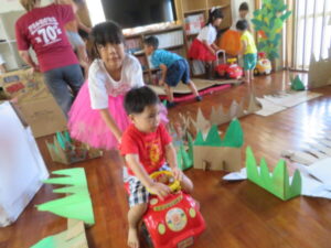 段ボール迷路に山登り、草原を車で通り抜け恐竜と戦う!!