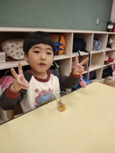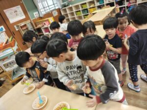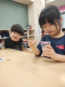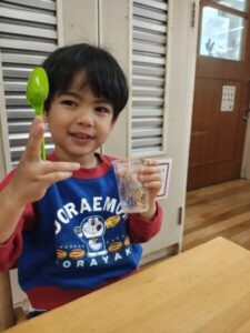 どの子もパフェ屋さんの店員になりきって、パフェ作りに挑戦✌️