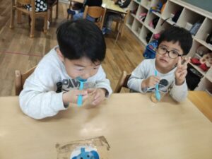と、友だちと楽しそうにお喋りしながら作っていましたよ😋