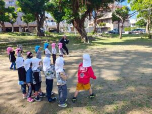 お約束を聞いて、お弁当バックと水筒を持って、大神公園へ出発❕✊🏻‪💨