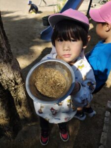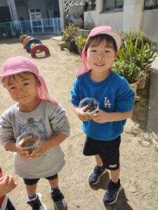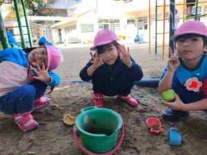 園庭遊びでは、鬼ごっこや泥団子作りに夢中です!
