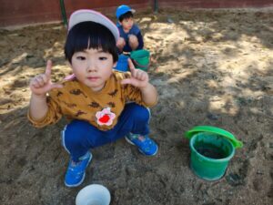 砂場コーナーでは、穴を掘ったりチョコレート屋さんになったり友だち同士役割を決めながら楽しんでいました😆