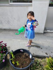 お花が咲いていることに気づき、お水をかけてあげる姿も、、🌷ありがとう🍀