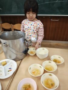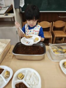 今日の給食はハヤシライス🍛!お当番さん頑張って配膳してくれています😊✌️