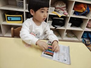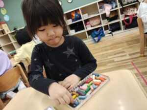 「ハサミを使うときは座って使う!」