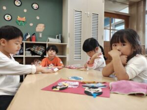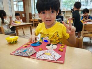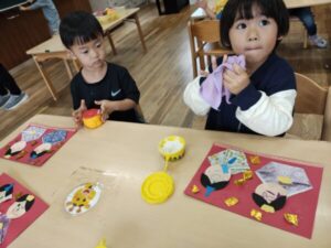 「どんなお顔にしようかな〜」「ニコニコな顔にしよ」