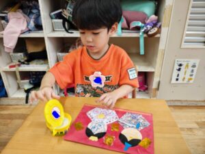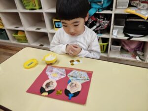 先週、折り紙でお内裏様とお雛様の着物を折り、今日はその続きからスタート✌️