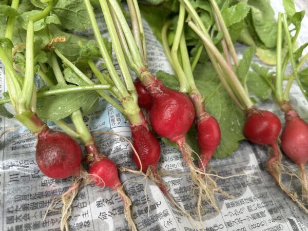 今日は、二十日大根(ラディッシュ)の収穫をしたり、お野菜を洗っています。