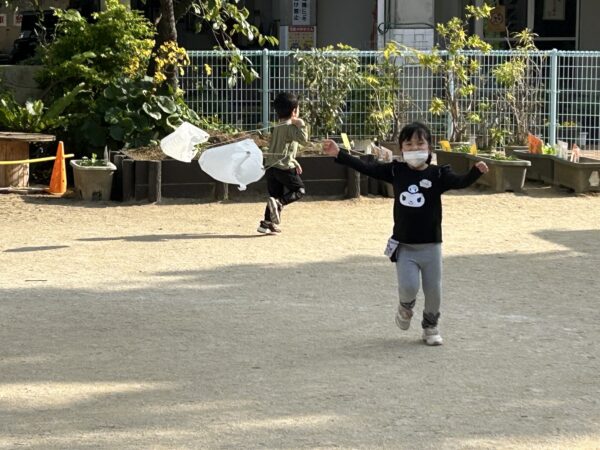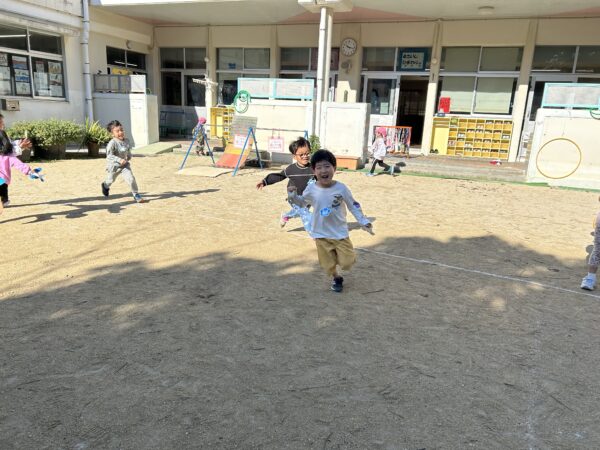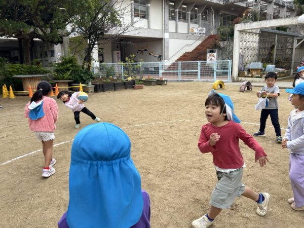 園庭では、しっぽとりゲームやドッヂボールで大盛り上がりでした!お友達同士の交流も増えて、沢山の笑顔に先生たちも嬉しい気持ちでいっぱいです(^^)
