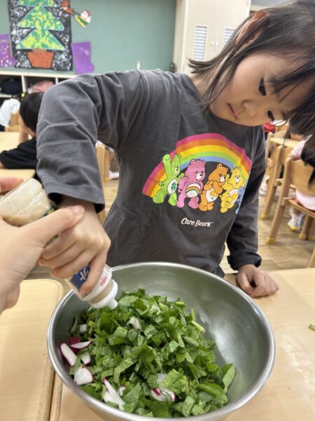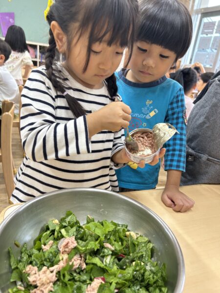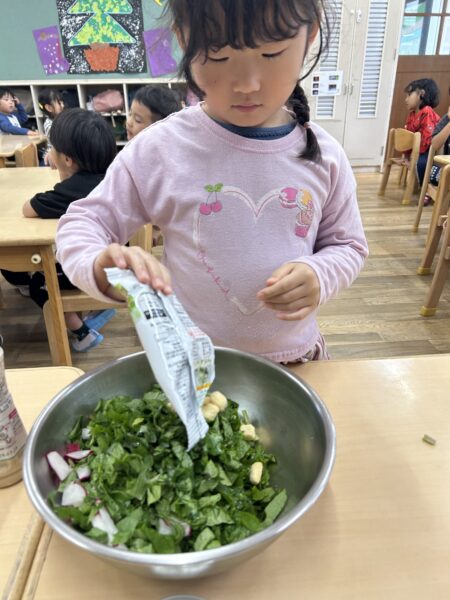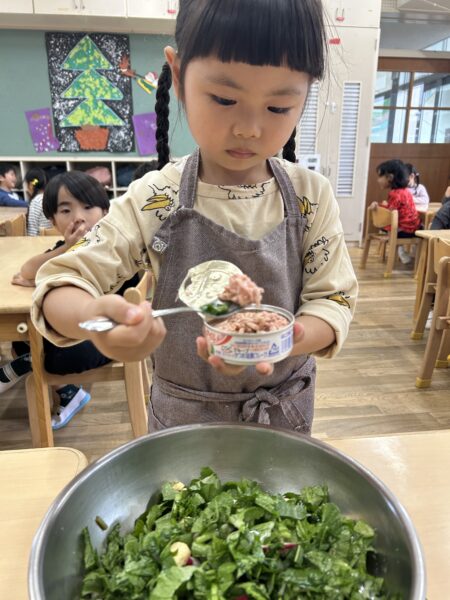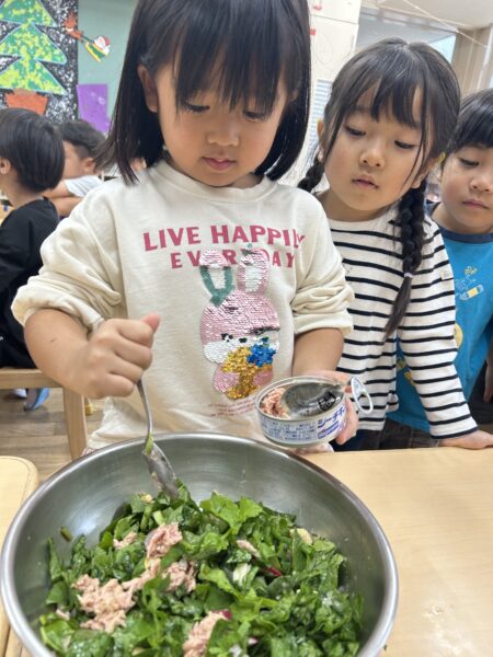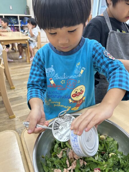 調理過程で、良い匂いがすることに気付き子ども達も期待感あふれ嬉しそうでした。