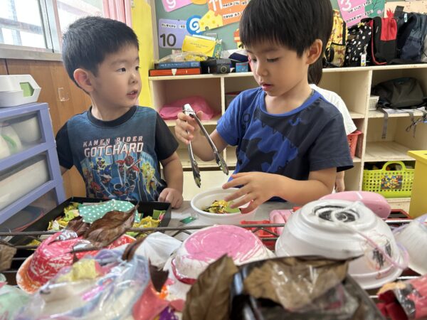 園庭にある落ち葉🍂を沢山拾って、制作やおもちゃ作りなどアイディアがひろがっています🙌