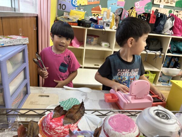 お金どうぞ!とみんな大きな声でごっこ遊びを楽しんでいます。
