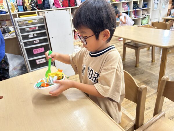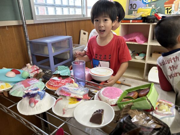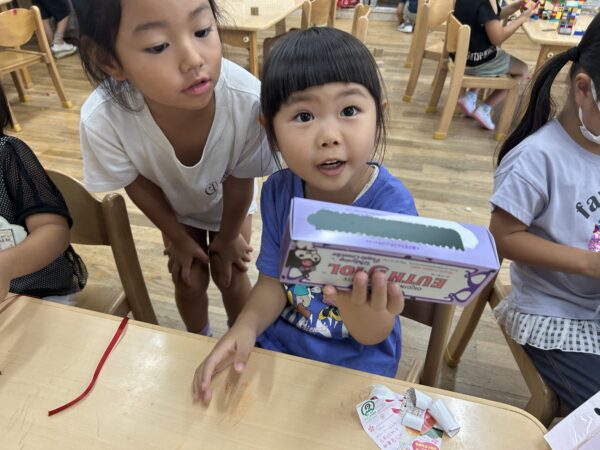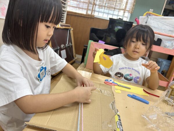 製作にあまり参加したがらない子も、お友達の作品を見て興味が出ているようです☆