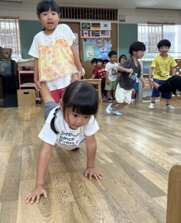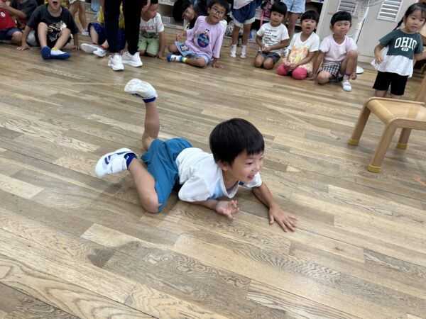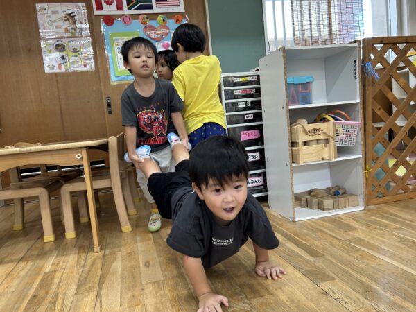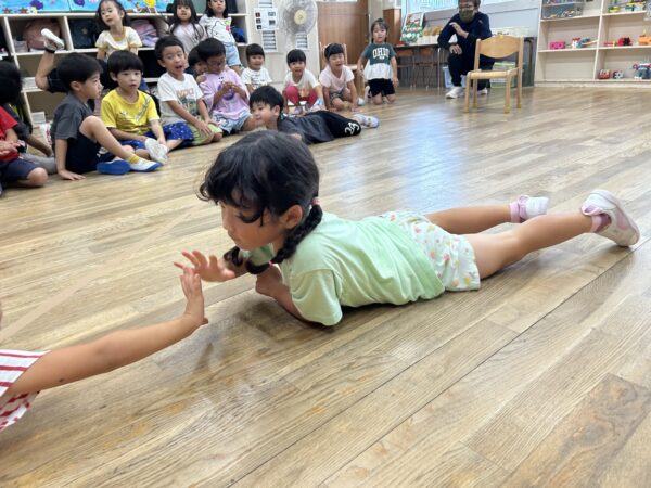 お友達の名前を呼んで、応援📣も大盛り上がり!ワニワニ合戦は、手足の力で前に進みます💨これも体の使い方を覚えると、ものすごーいスピードで進んでいました!