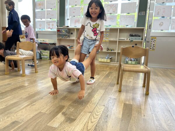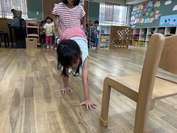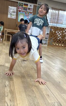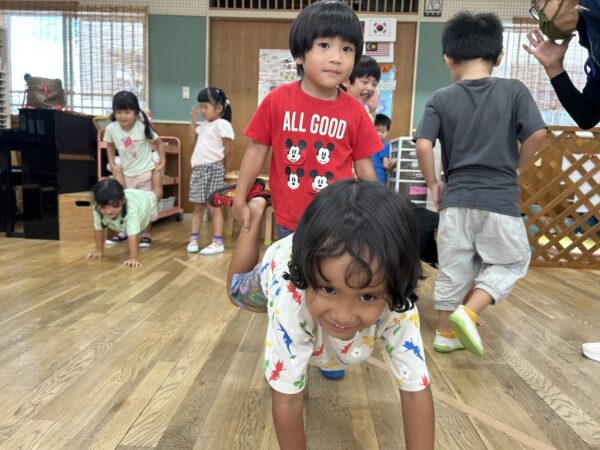 他にも、バランストンネルや、だきつきコロリン♪、デコタッチなど多様な動きを運動カードを通して、身に付けていますよ!