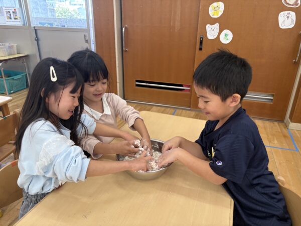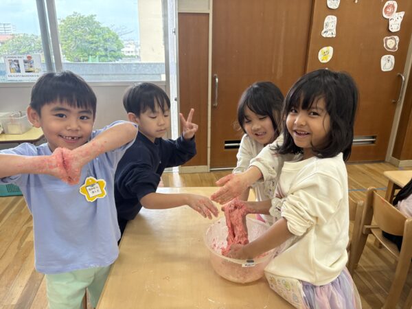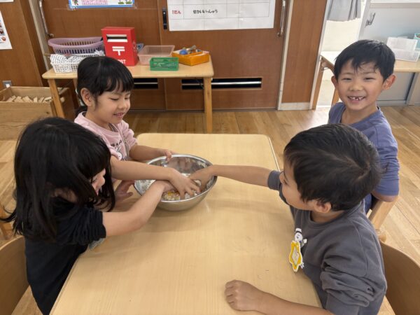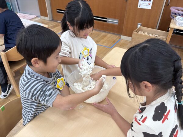 始めは少し感触に抵抗があった子もいましたが、慣れてくると皆でコネコネ・・・