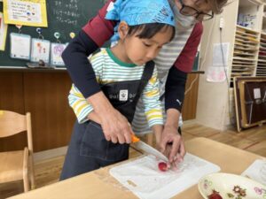 包丁でカットするのも上手になっています✨️
