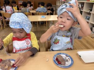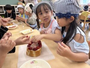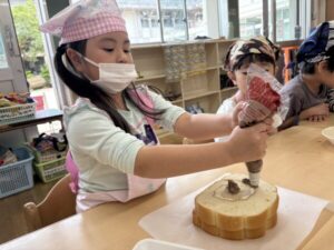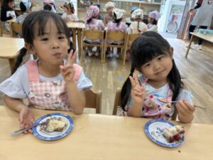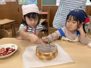 今日はひまわり組最後のクッキングでケーキ作りしました🎂