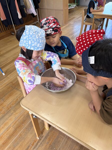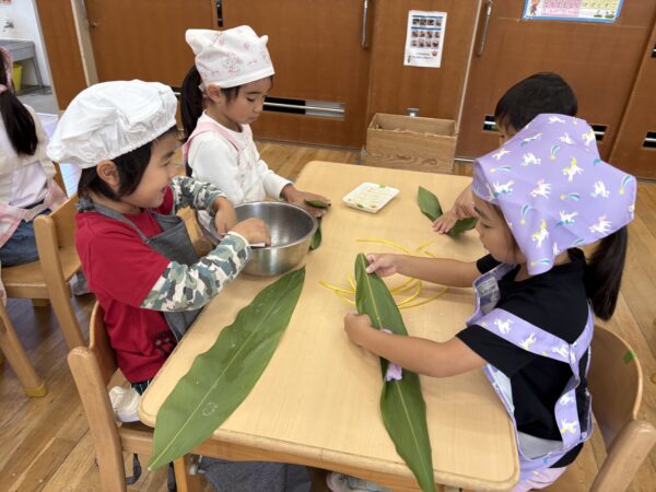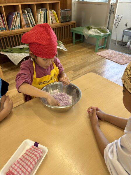 ムーチーの日は小麦粉粘土で作りましたが、「本物のムーチーを作ってみたい」との声があり、今回