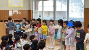 ひまわり組さんはタンバリンや鈴、カスタネットも使って「あわてんぼうのサンタクロース🎅🏻」