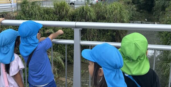 川の音に涼んだり、大きな白い鳥「さぎ」を見つけて大興奮!