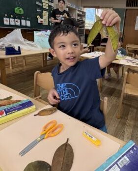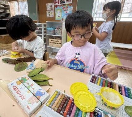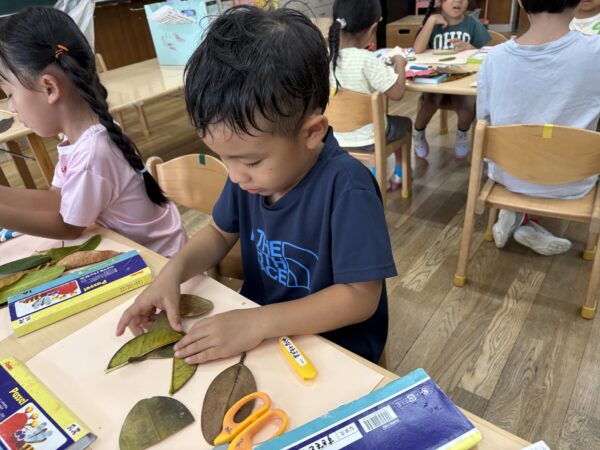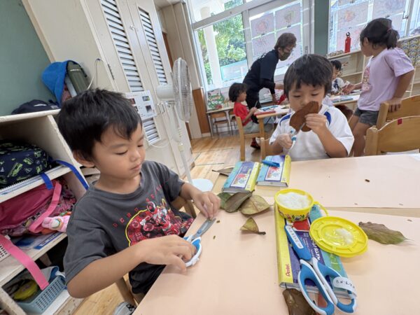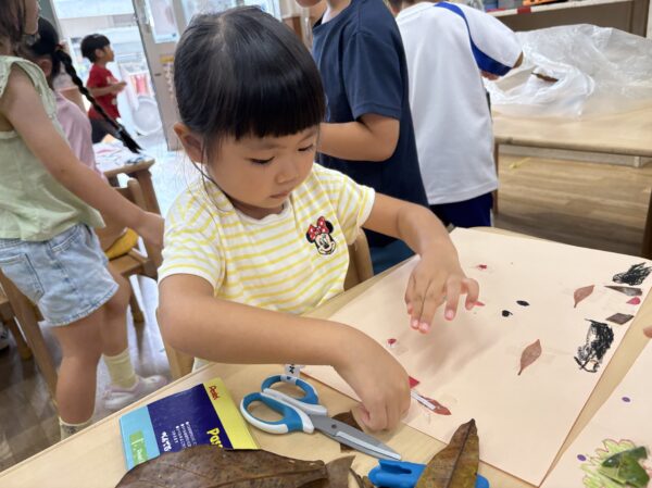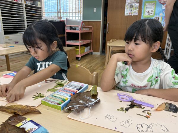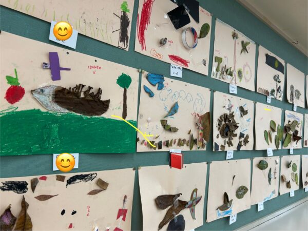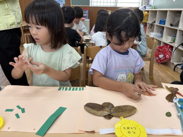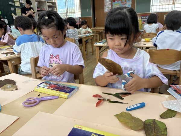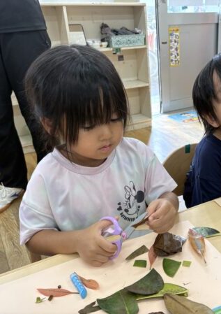 試行錯誤しながら、様々な形や色の葉っぱも組み合わせて素敵な作品が出来上がりました♪
