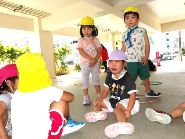 泣いているお友達を見て、「2回戦頑張ったら、いいんじゃない?」「代わりに、俺が鬼やろうか?」と、子ども達なりに寄り添って声をかける姿が見られました。