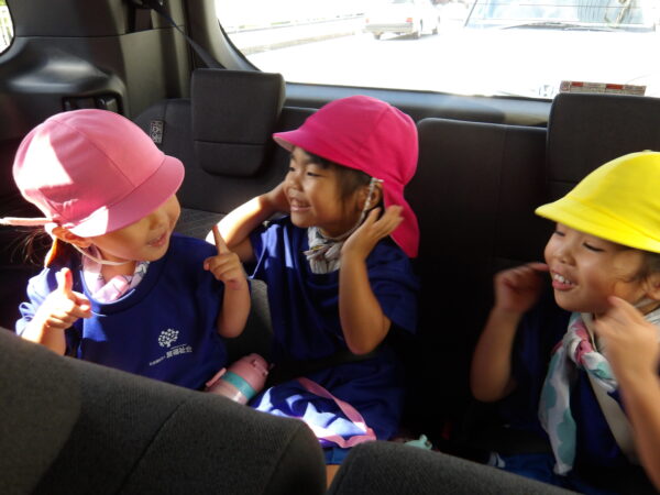 赤グループ青グループに分かれて園バスにのり、いざ出発!!