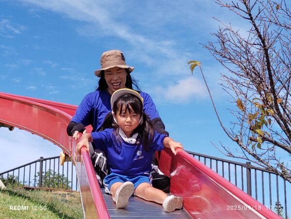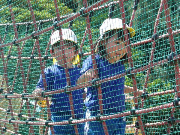 ターザンロープやタイヤの岩とび、スプリングなどいろんな遊具で楽しみ、帰りのバスの中では「また来たいね~♪」という声が聞かれました。