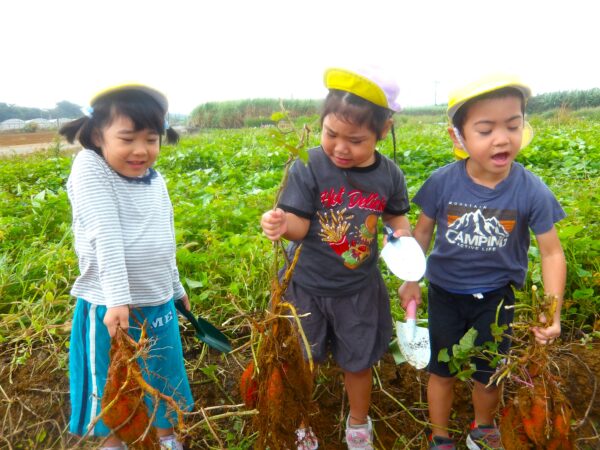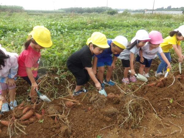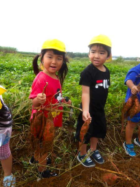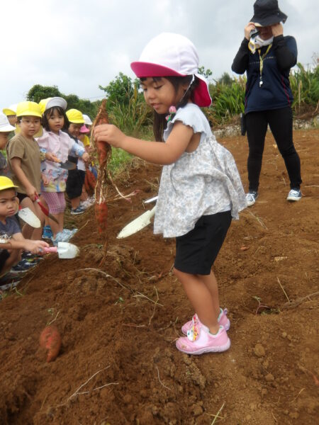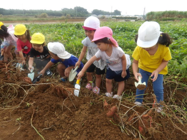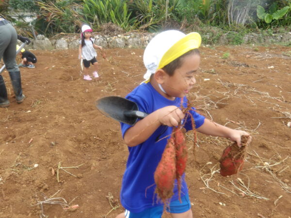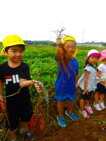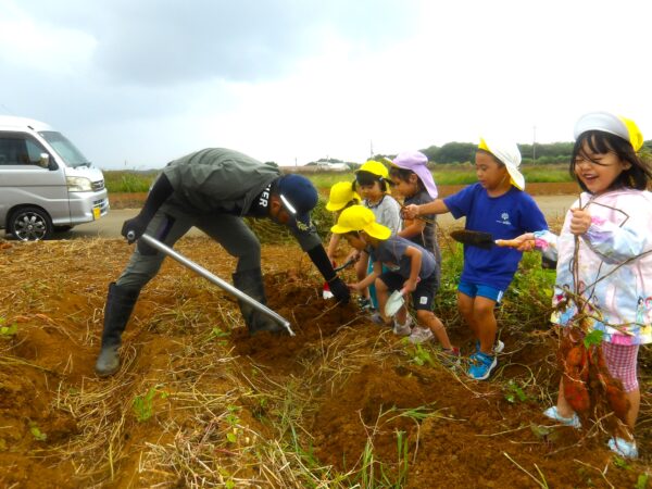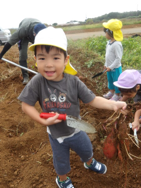 農家の方に手伝ってもらい、大きなお芋を掘り当てると「あった~!!」あちらこちらから歓声があがりました。
