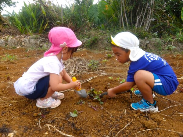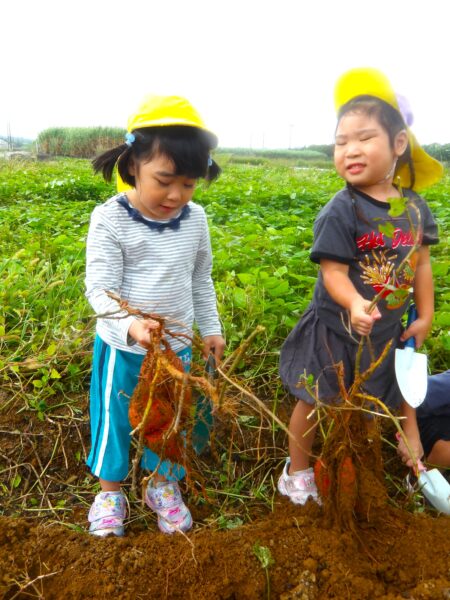 中には「ここにお芋の芽があるから、ここ掘ったらお芋あるんじゃない?」とよく観察して気付いた子もいました。