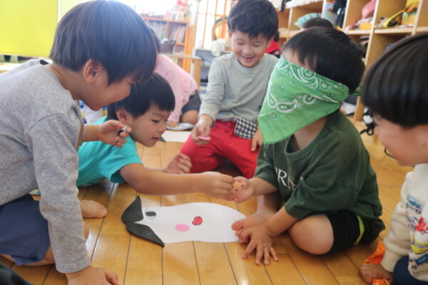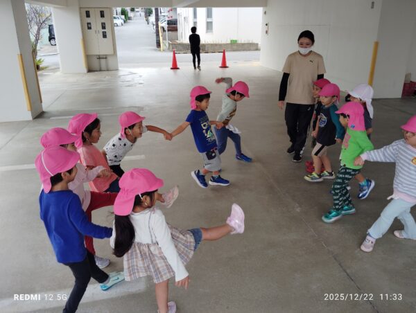 また、最近はみんなで「花いちもんめ」をして遊ぶことも楽しんでいますよ。友だちとの関わりにも繋がり、より一層友だちとの仲も深まってきています(*^-^*)