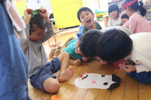 子ども達と一緒に作った福笑いでは、面白い顔の出来上がりに思わず爆笑の子ども達!正月そうそう、たくさんの笑顔が見られました♬