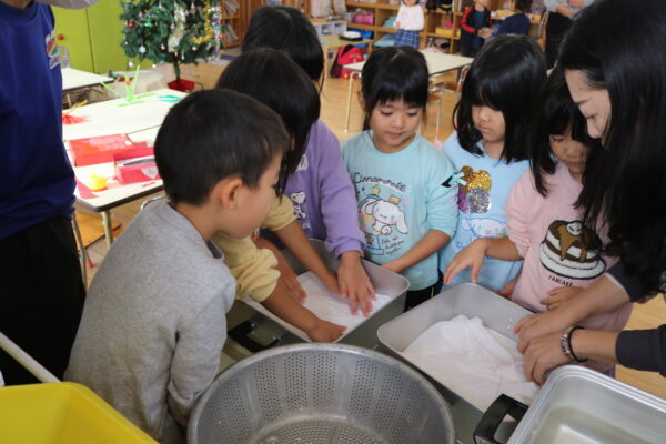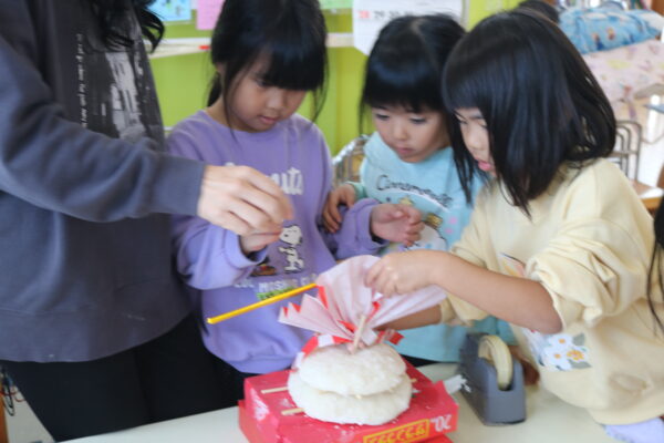 今年最後の日、5歳児さんはお正月に向けて鏡もちづくりをしました。