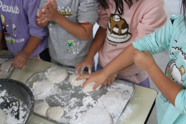 先生達の力も借りて何とかお餅になり、そこからは保育園用と自分用に餅を丸めました。