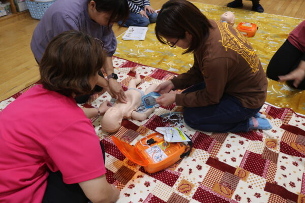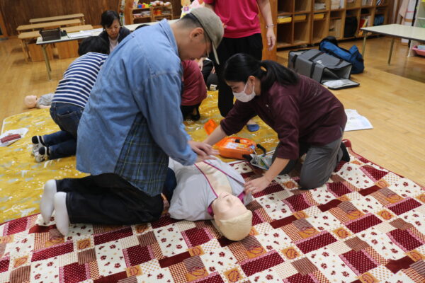 知識を深めたり、実践をしてみたり保護者の方からも「この時はどうしたらいいですか?」などと質問があったりなどと、有意義となれた時間でした。目の前で倒れたり、窒息していた時に自分ができることはなんだろう?と考えられたことだと思います。毎年行われている、救急救命講習会なのでぜひ来年度もたくさんの保護者の皆様のご参加をお待ちしていますね。ご参加された保護者の皆様、お忙しい中ありがとうございました。